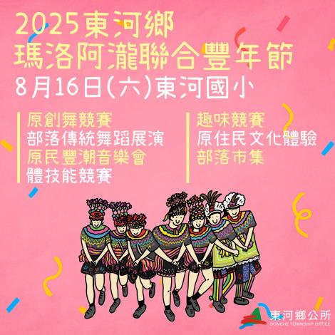 (三)聯合慶豐年活動現場有傳統舞蹈展演、原創舞競賽、原民豐潮音樂會、體技能競賽、趣味競賽、原住民文化體驗、部落市集等,竭誠歡迎蒞臨參與。