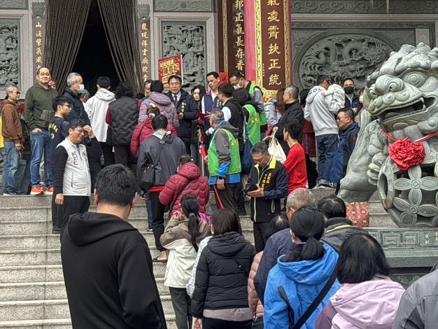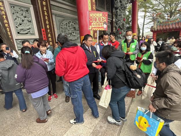 黃偉哲市長新春初五龍崎區中坑文衡殿參香祈福,向民眾拜年、發紅包!